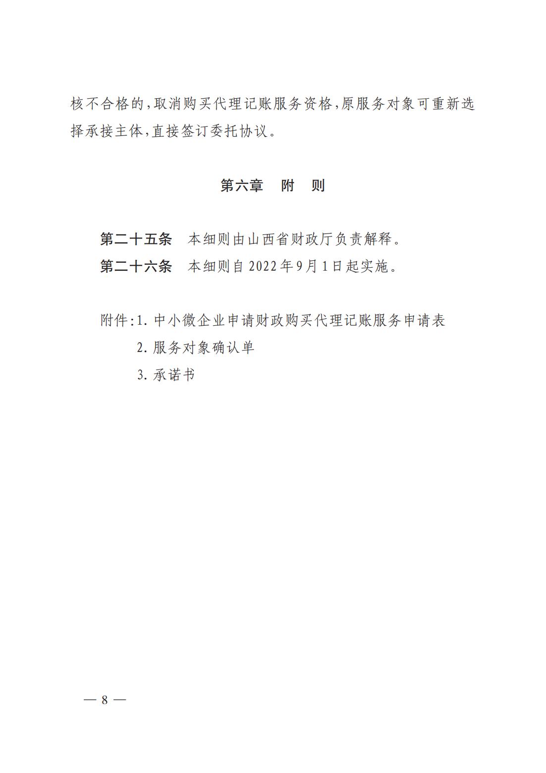 關于印發(fā)《山西省財政廳為中小微企業(yè)購買代理記賬服務實施細則(試行)》的通知